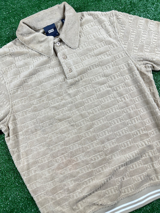 Kith Graham Velour Beige Men's Polo Shirt (STAINED) - Size Small