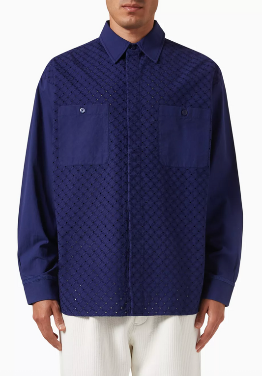 KITH Men's Lattice Floral LS Apollo Button Up Shirt - Navy Blue - Size Small BRAND NEW