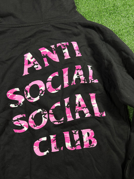 Anti-Social Club X Undeafeted Exclusive Black/Pink Pullover Hoodie - Size Small