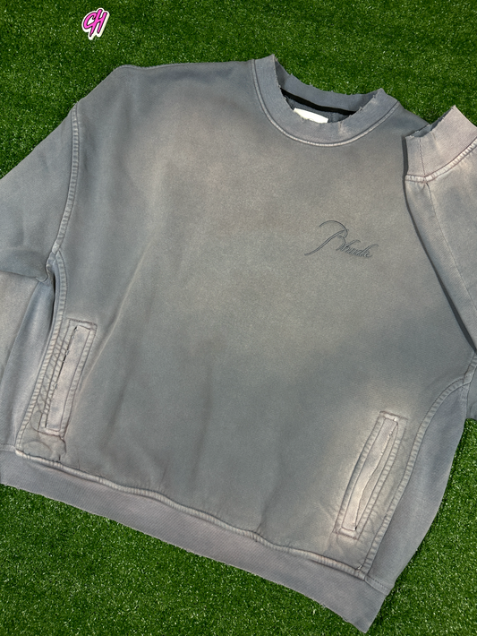 RHUDE Authentic Embroidered Crewneck Sweater-Sundry Steele- Size Small Mens MSRP:$680.00