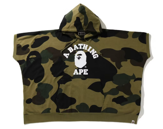 Bape 1st Camo Green College Poncho Pullover Hoodie Size XXL