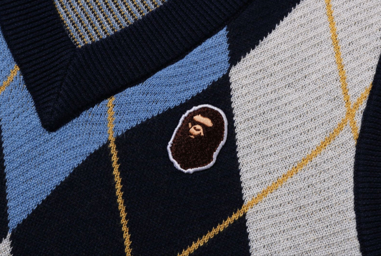 Bape Ape Head Patch Argyle Knit Vest Navy SIze 130 K