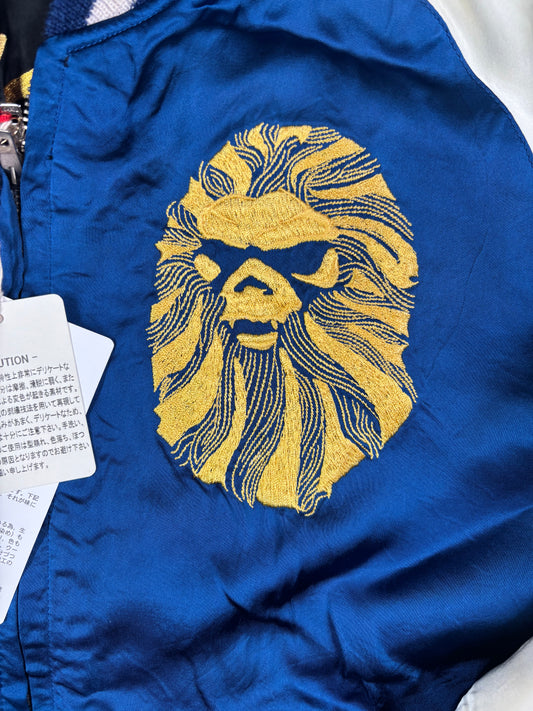 Bape Black Teal Satin Bomber Jacket Size Large (MSRP: $900.00)
