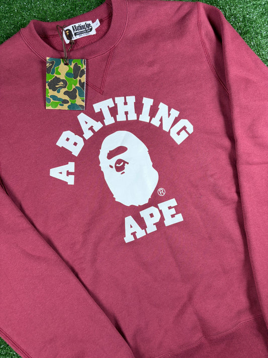 BAPE College Logo Burgundy Crewneck Sweater Size Large