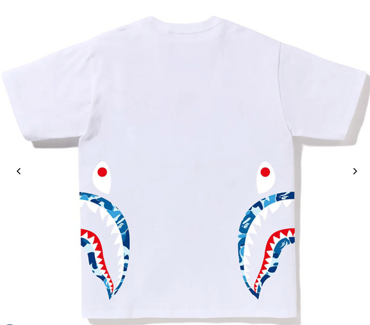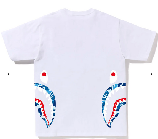 Bape Kids ABC Camo Side Shark Tee White & Blue Size 110K
