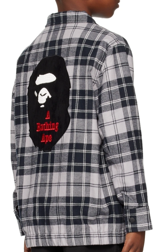 Bape Kids Check Ape Head Patch Zip Jacket Jr Grey Size 160 K