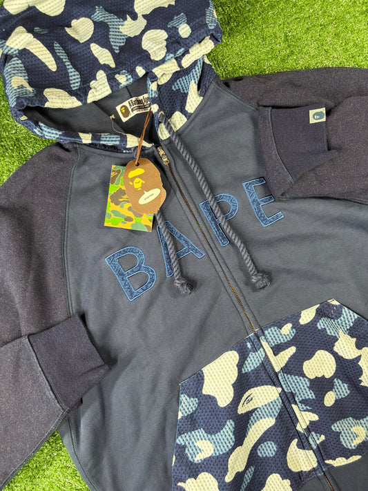 Bape X Sashiko Navy Camo Relaxed Full-Zip Hoodie Size Large