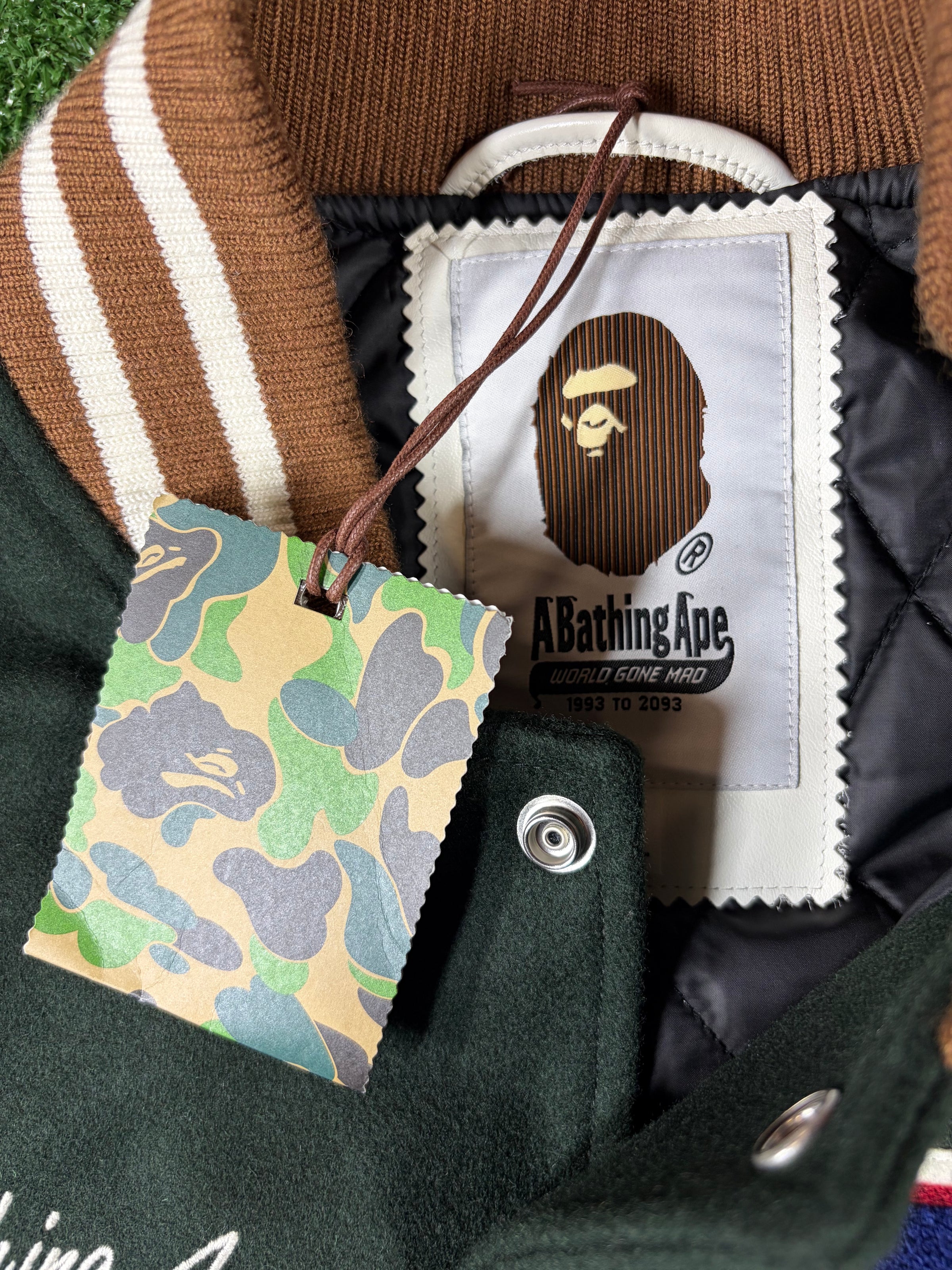 Bape X END. 'Bowling Pins' Green Varsity Jacket Size XL
