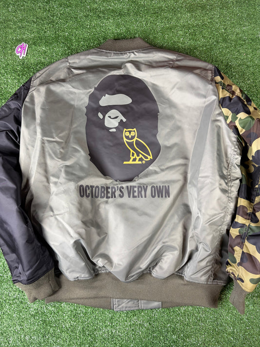 Bape X OVO Dark Green MA-1 Bomber Jacket Size XXL