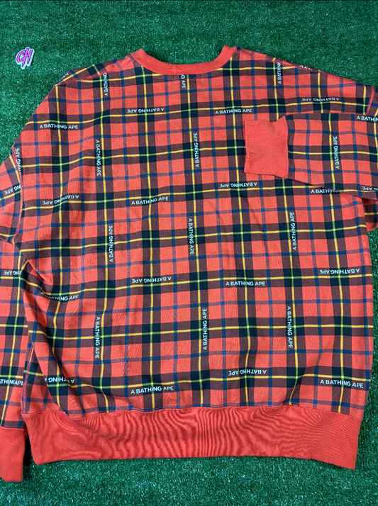 BAPE Logo Check Red Loose Fit Crewneck Sweater Size MD