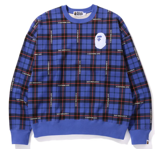 Bape Check Logo Loose Fit Blue Crewneck Sweater Size Small