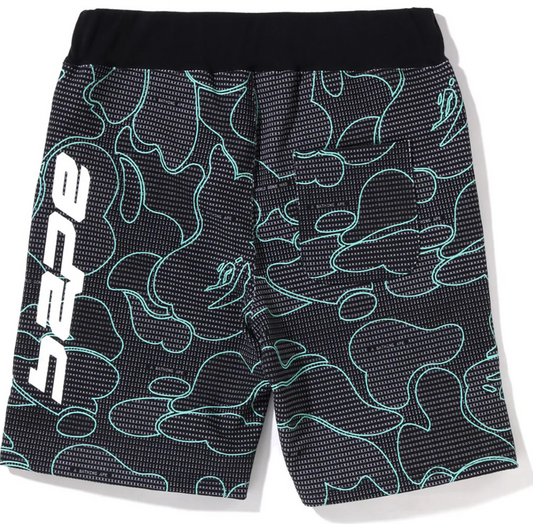 Bape Text Code Camo Black Sweat Shorts Size XXL