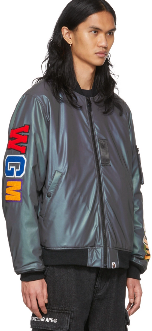 Bape Grey Reflective Loose Shark MA-1 Bomber Jacket Size Medium