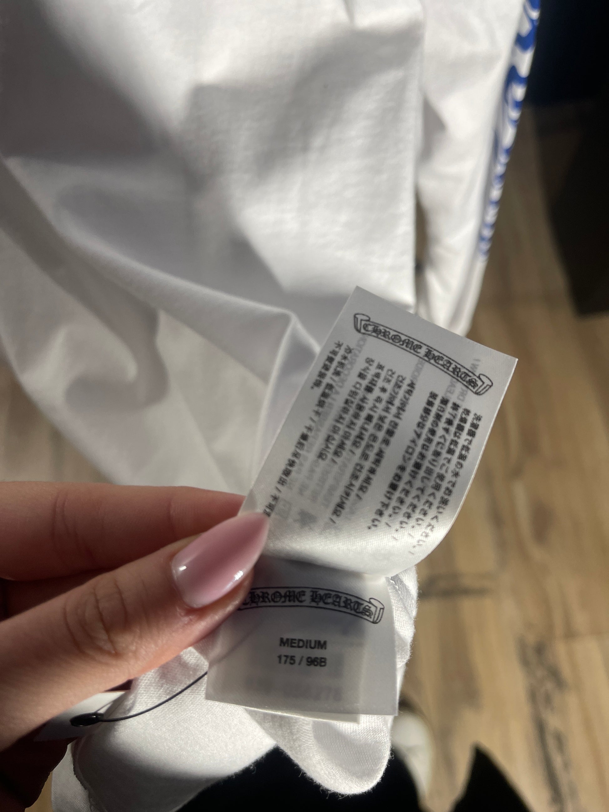 Chrome Hearts Blue Neck Logo White L/S Shirt - Size Medium Brand New