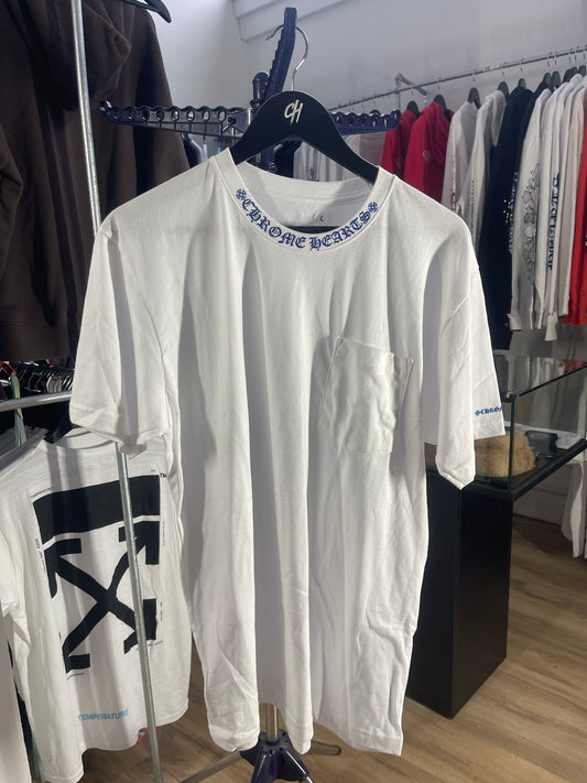 Chrome Hearts Blue Neck Logo White S/S T-Shirt - Men's Large