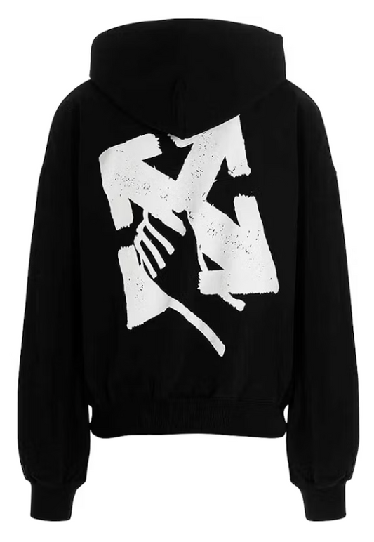 OFF-WHITE 'Hand Arrow' Graphic Boxy Black Pullover Hoodie LG