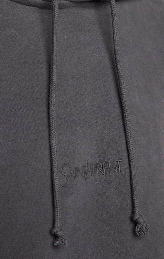 Saint Laurent Men's Fleece Tonal Logo Hoodie Charcoal Grey Size Medium