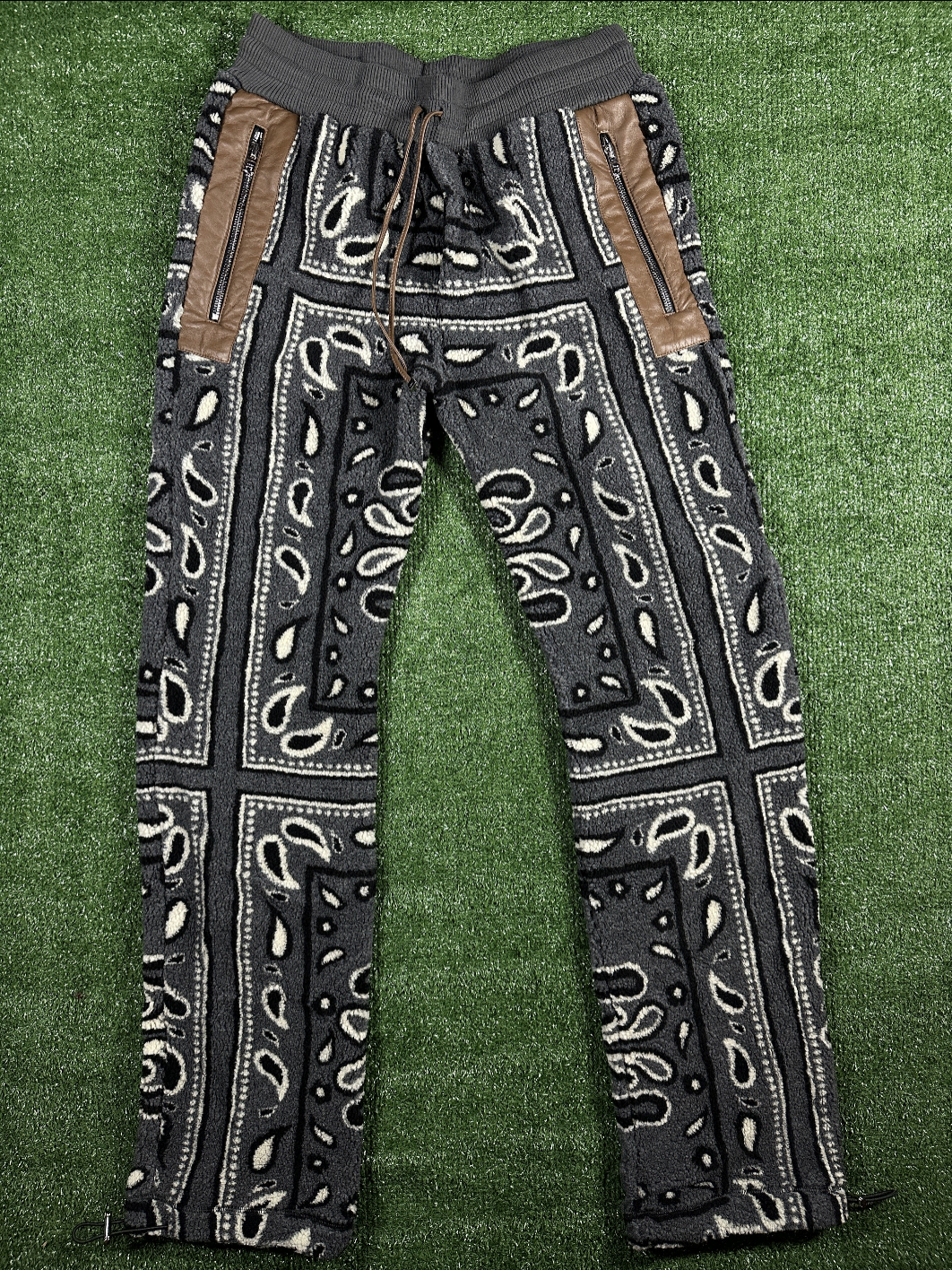 Amiri Men's Grey Fleece Bandana Sweatpants - Size Large