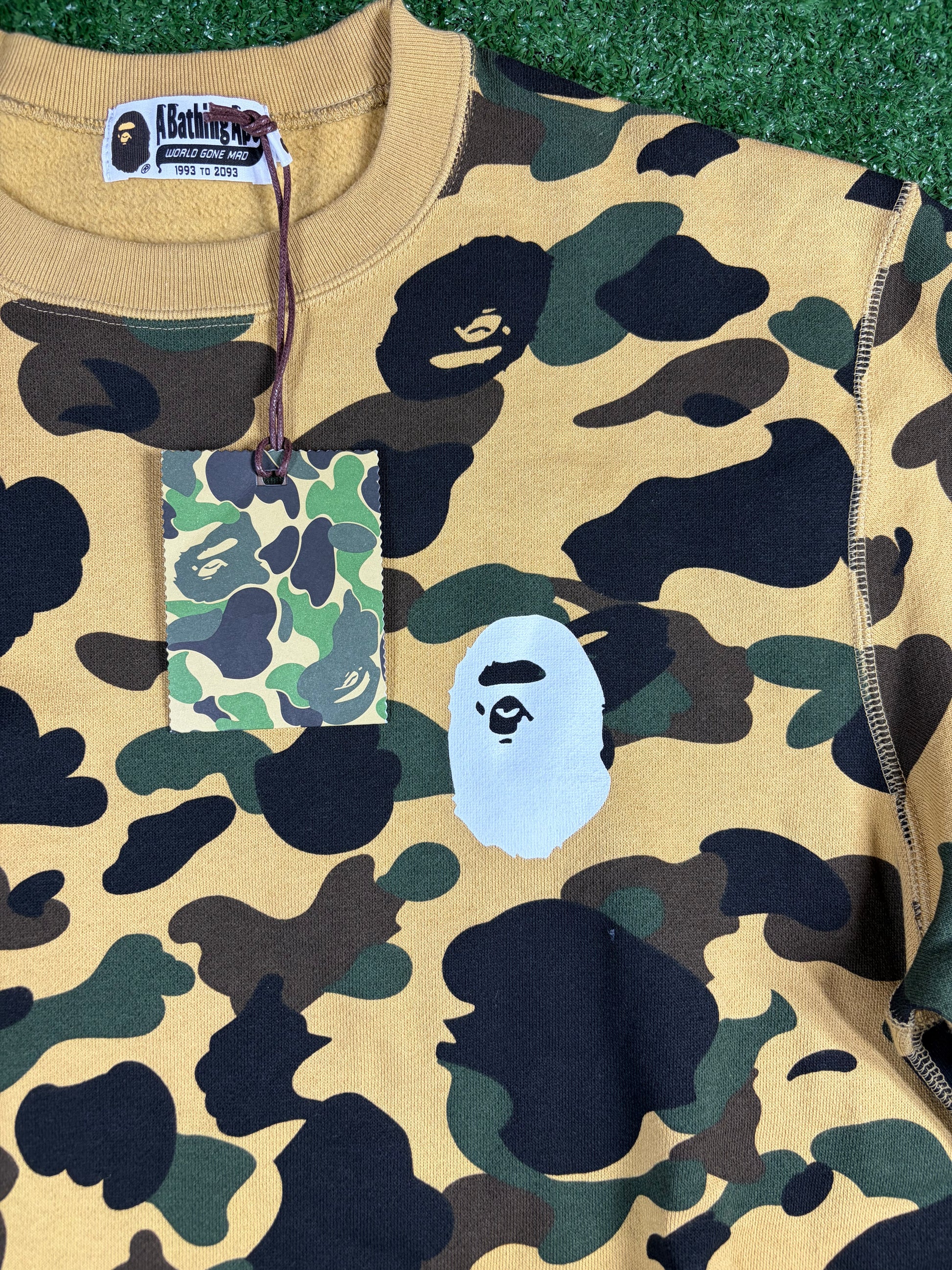 BAPE 1st Camo Ape Head Yellow Crewneck Sweater Size Large