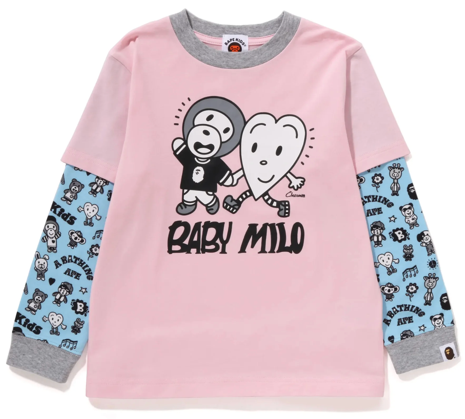 Bape Kids x Chocomoo Milo Friends Layered L/S Tee Pink Size 100 K