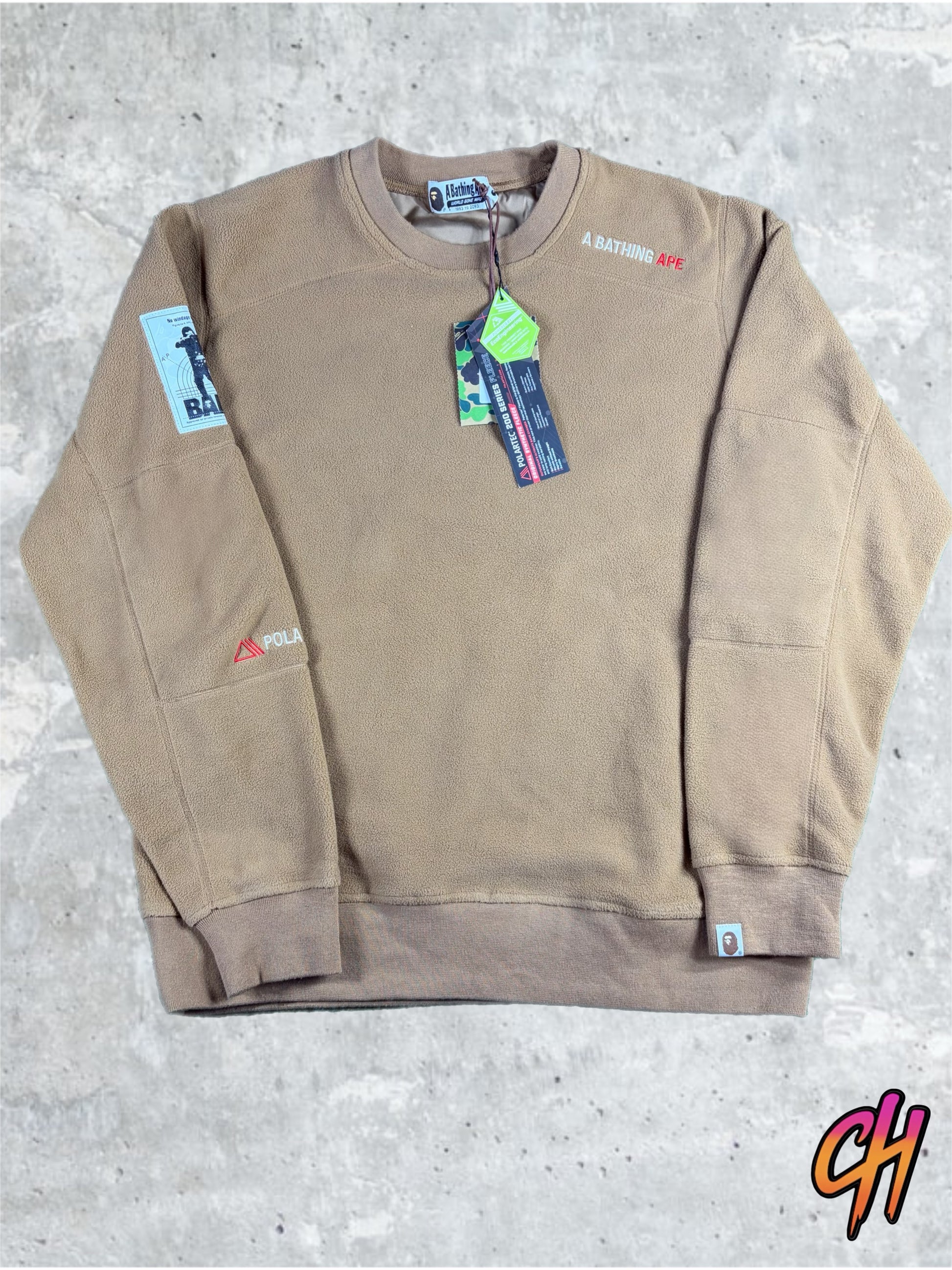 BAPE PolarTech Wide Fit Beige Crewneck Size Large
