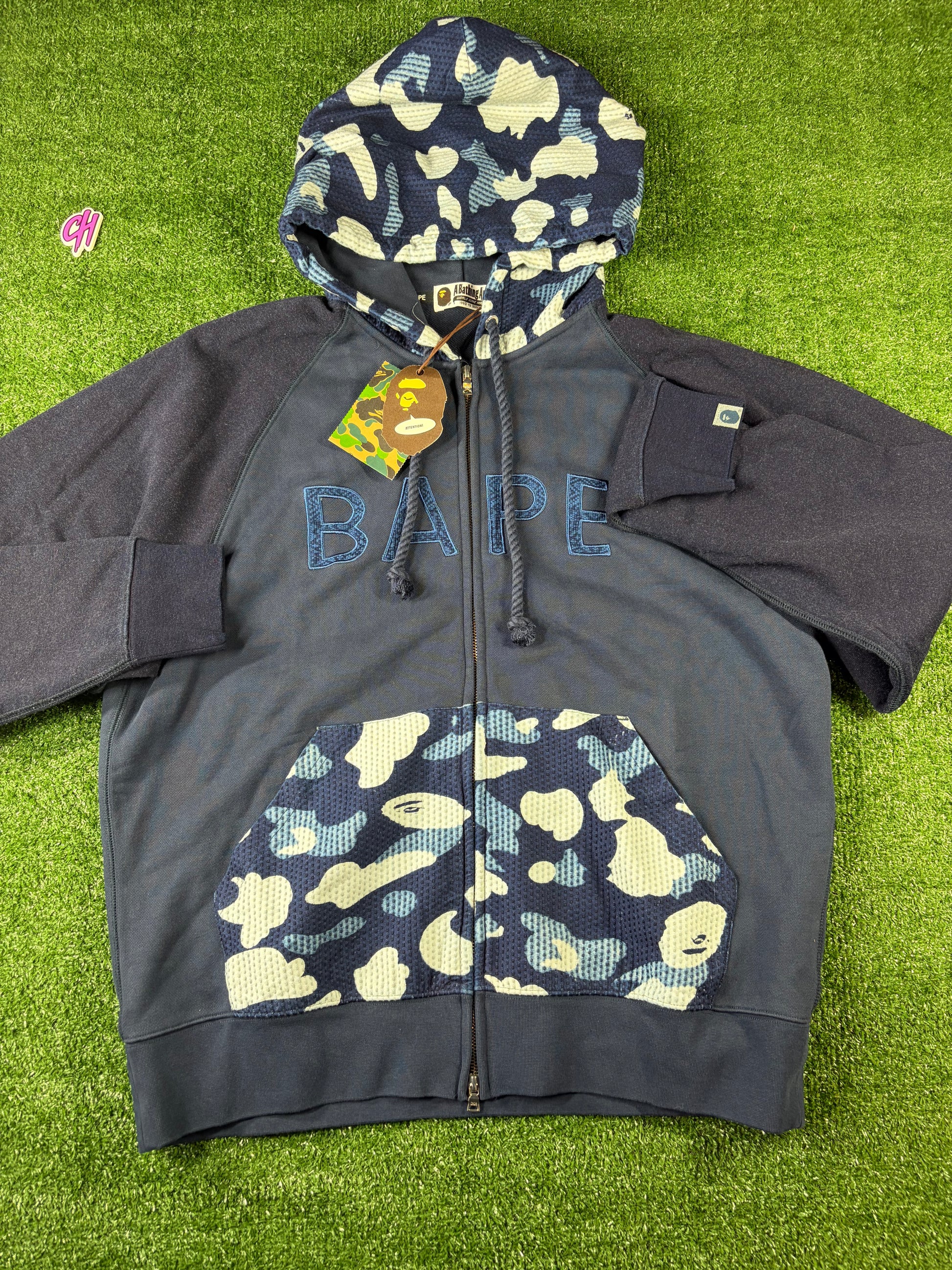 Bape X Sashiko Navy Camo Relaxed Full-Zip Hoodie Size Large