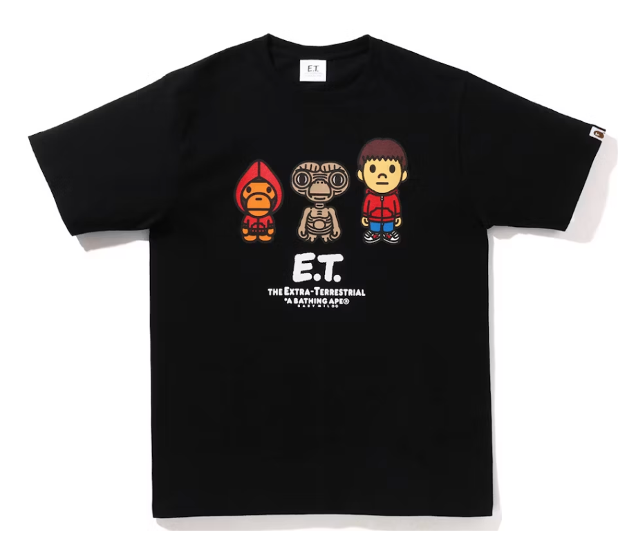 Elevate your child's wardrobe with this exclusive Bape Kids x E.T. collaboration tee. Featuring the iconic Baby Milo character reimagined through the lens of the beloved E.T. franchise, this black crewneck delivers streetwear credibility with nostalgic appeal. Crafted from quality cotton construction, it offers comfortable everyday wear for young enthusiasts. The Size 130 K ensures an ideal fit for growing kids. A must-have piece for collectors and fans of both Bape's legendary aesthetic and classic cinema.