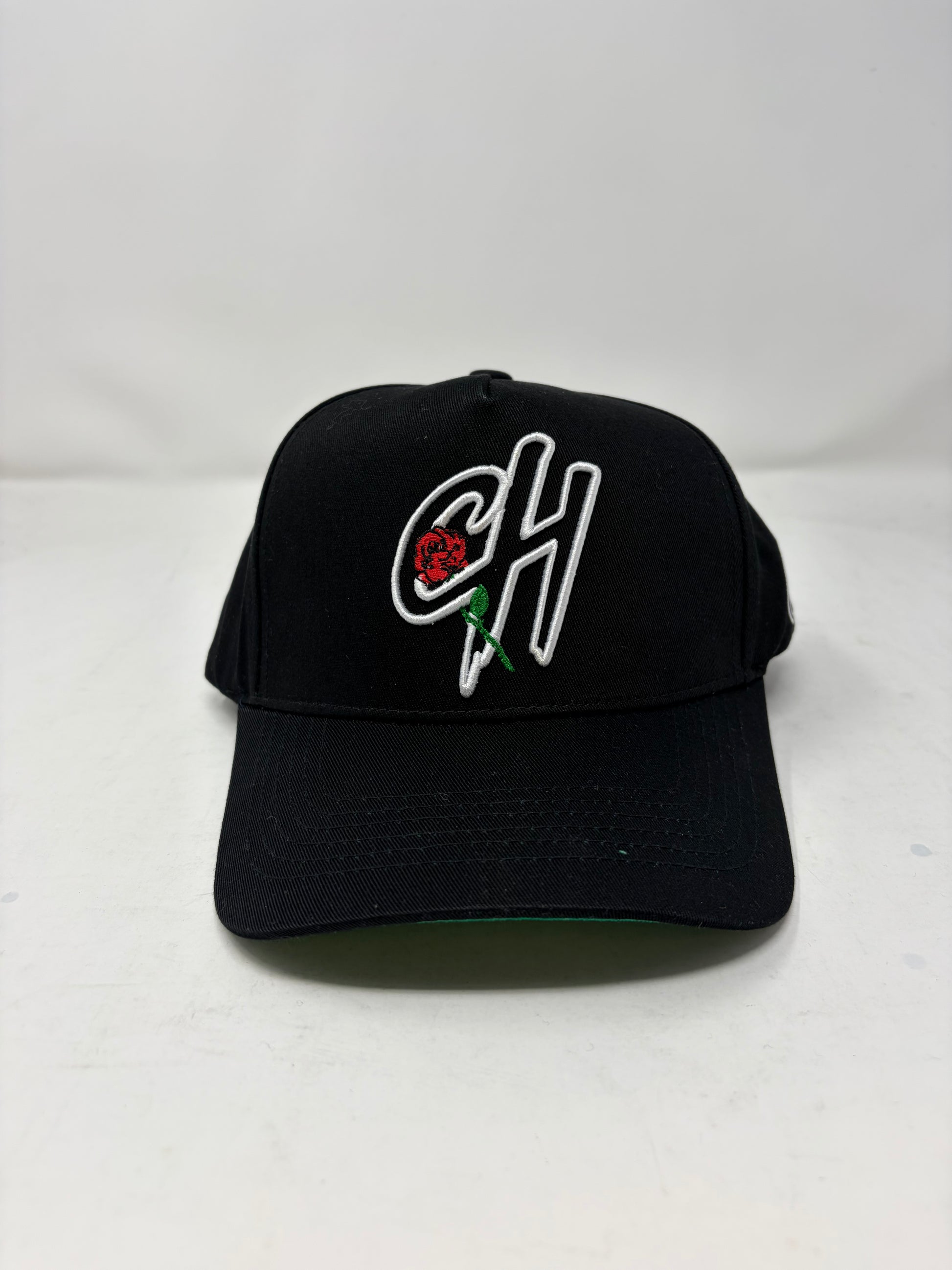 Central Hype Embroidered Rose Logo Black Snapback Hat