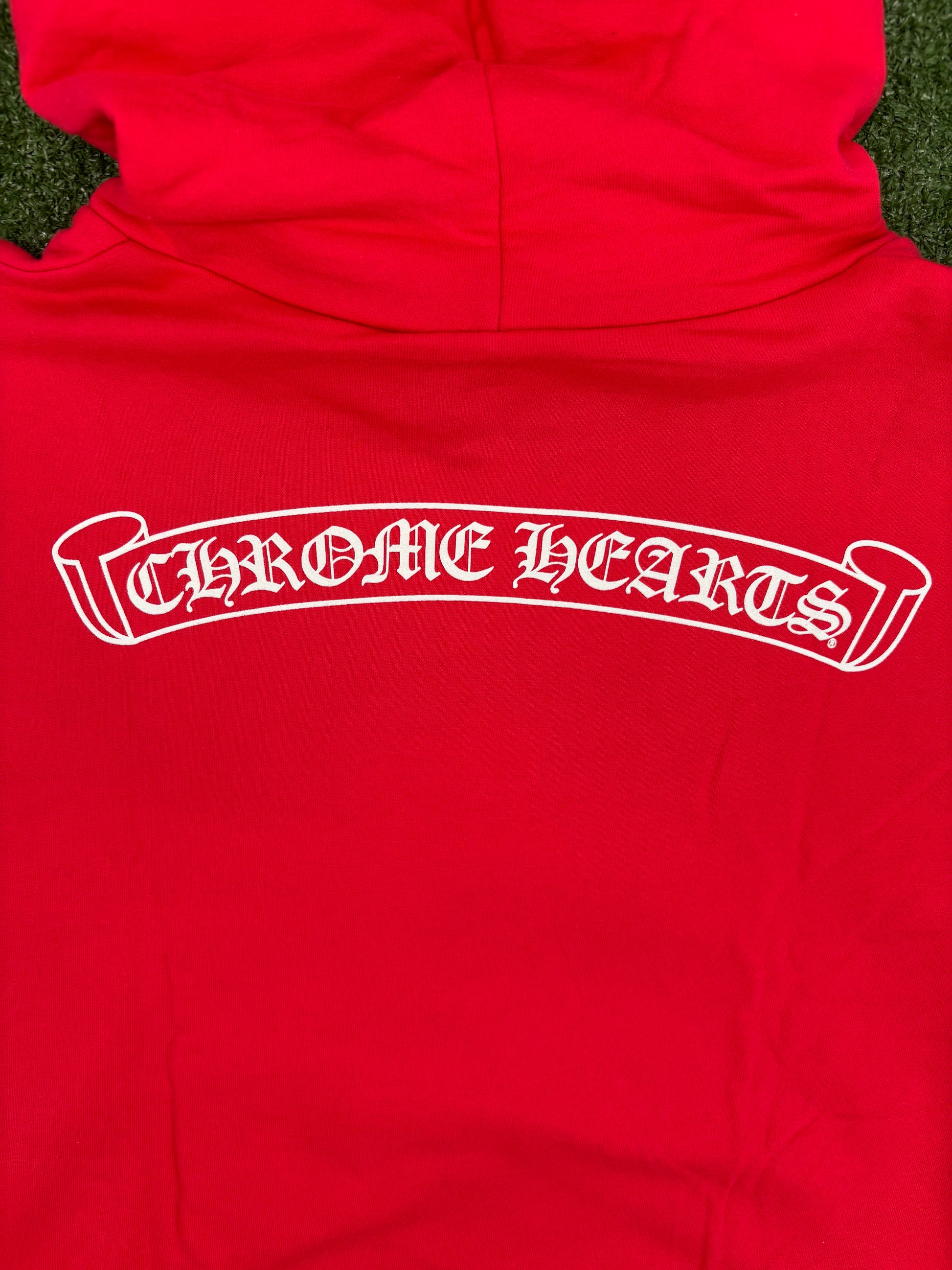 Chrome Hearts "Scroll Logo" Red Pullover Hoodie Size XXL