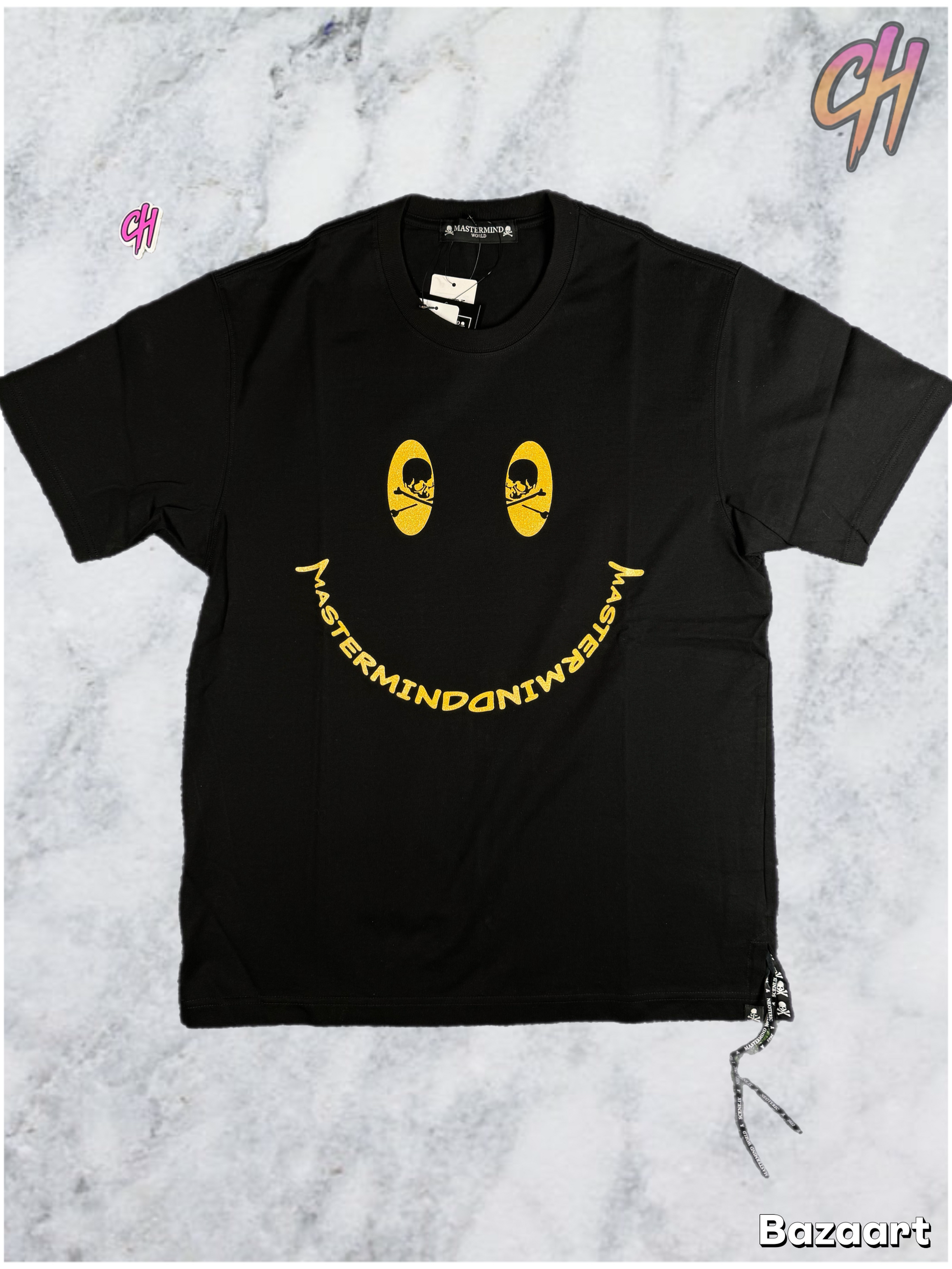 Mastermind World Gold Smiley Face Graphic Black T-Shirt Size Small