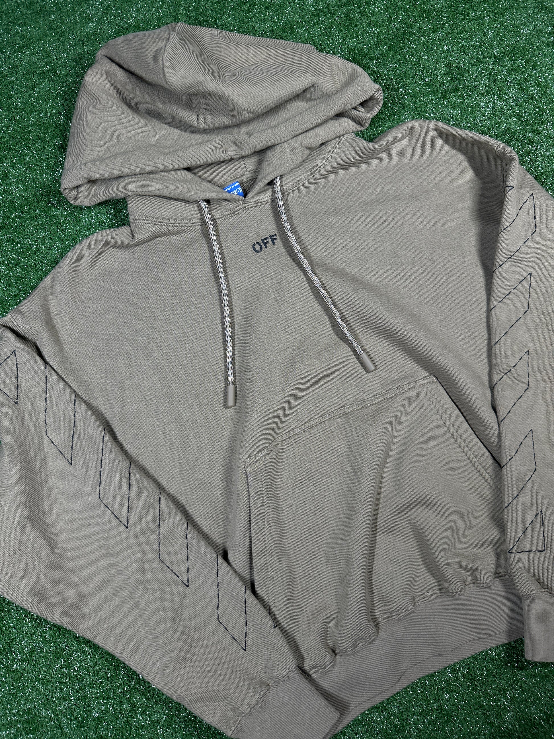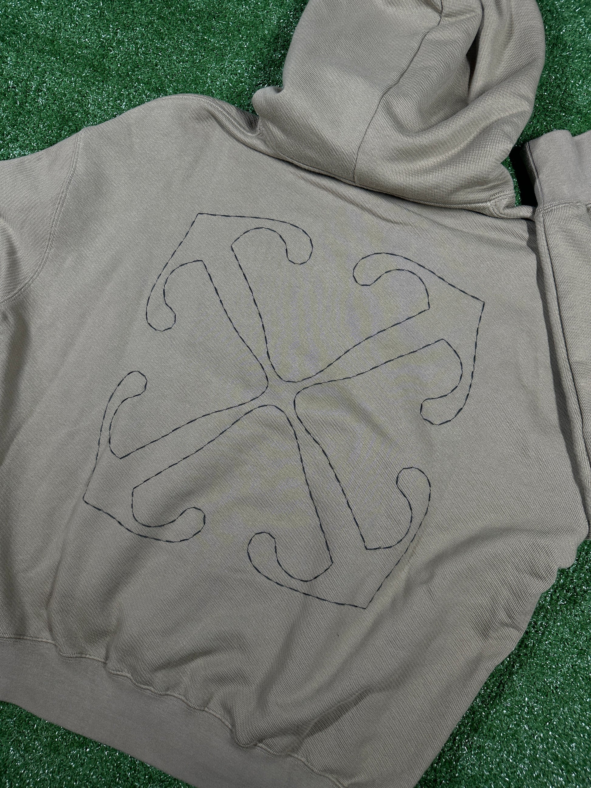 Off-White Brown 'Embroidered Arrows' Cotton Pullover Hoodie - Size Small