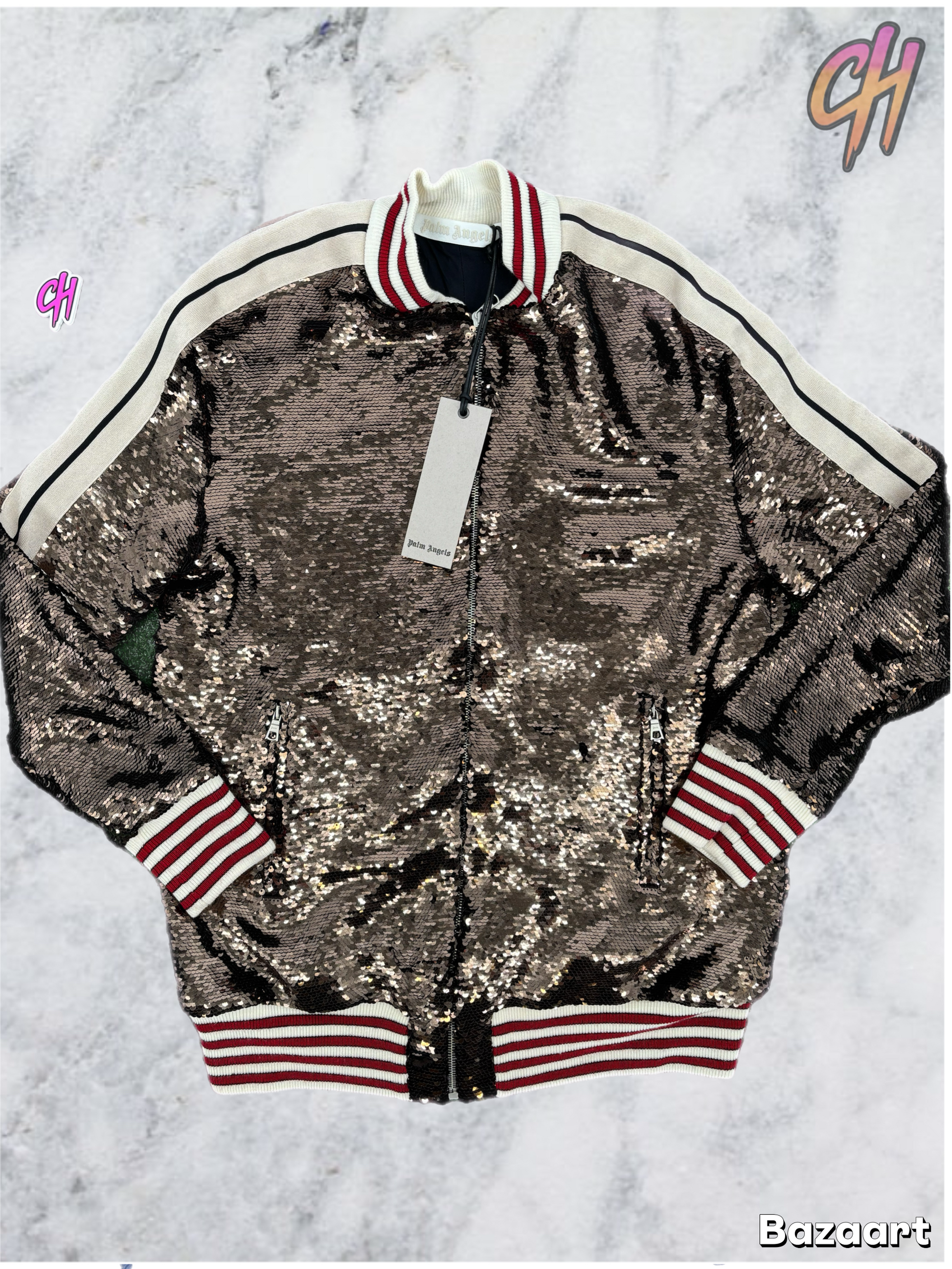 Palm Angels Women Brown Sequined Track Jacket Size Medium (MSRP: $707.00)