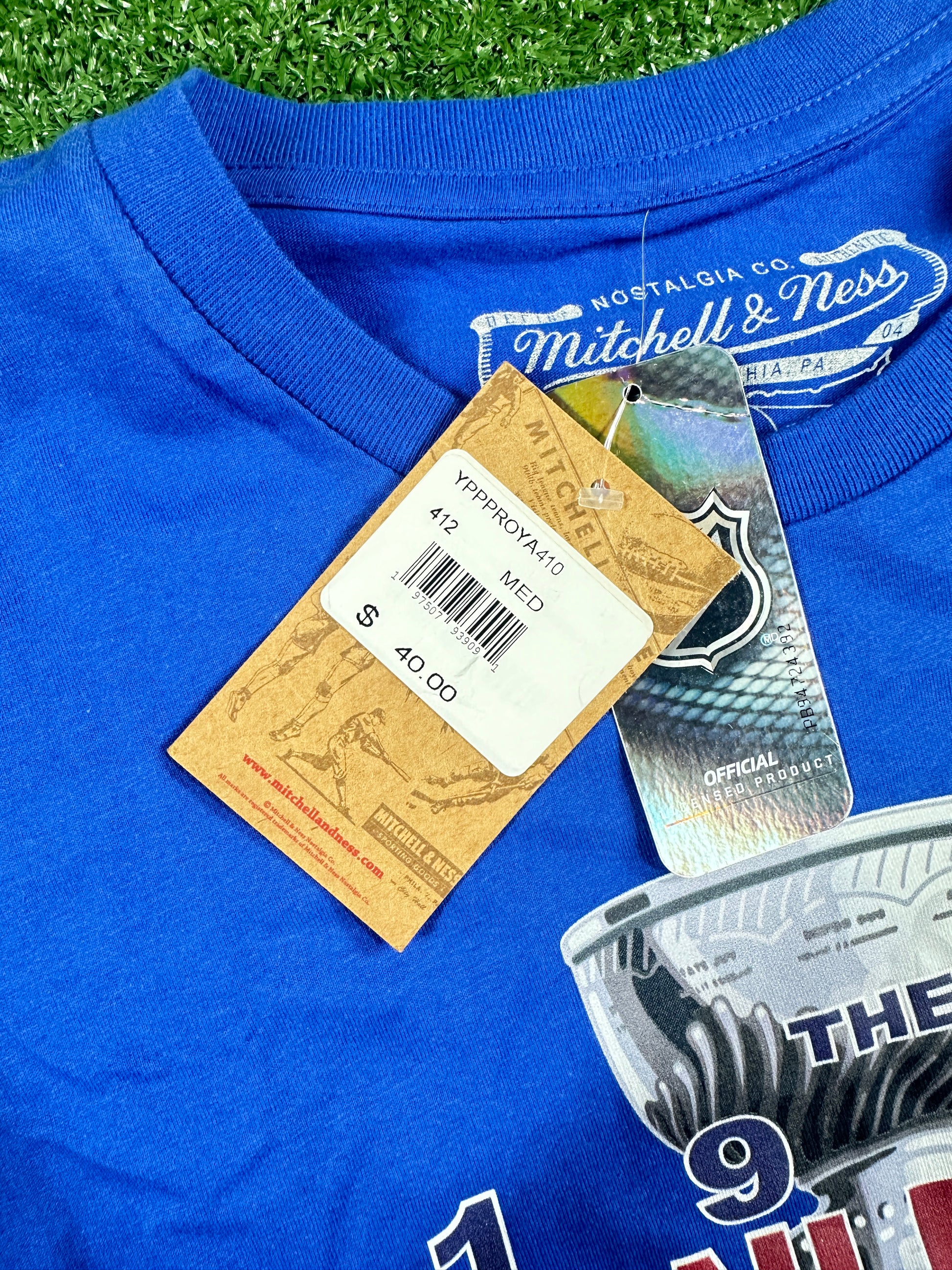 Celebrate the New York Rangers' Stanley Cup victory with this authentic Mitchell & Ness NHL T-shirt in size Small. Crafted with premium materials, it offers lasting comfort and a perfect fit for dedicated fans. The detailed design pays tribute to a historic championship, making it an essential addition to any Rangers supporter’s wardrobe. Wear it proudly at games or casual outings to showcase your expert-level fandom.
