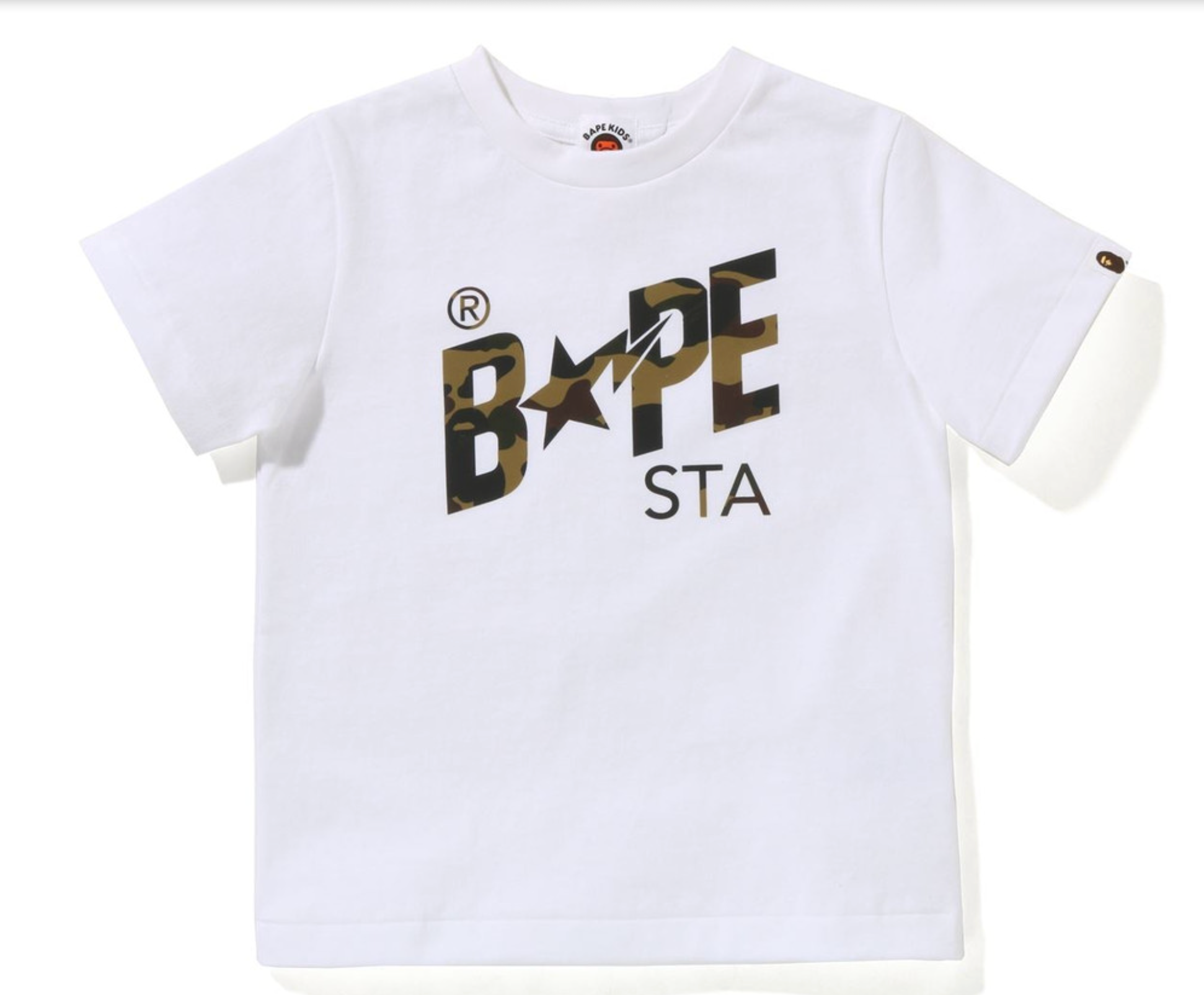 Bape Kids Reflector 1st Camo Bapesta Logo White T-Shirt Size 90