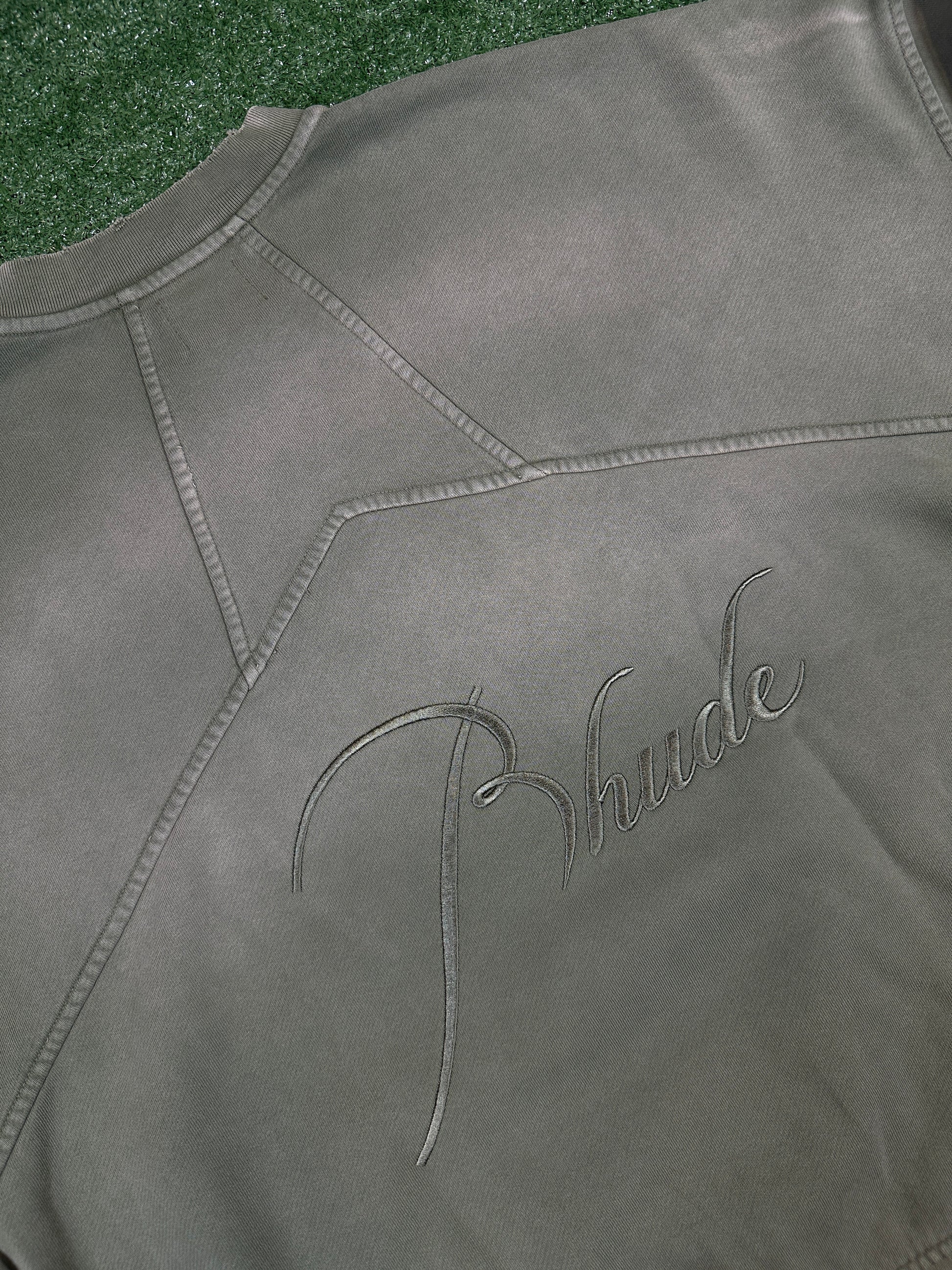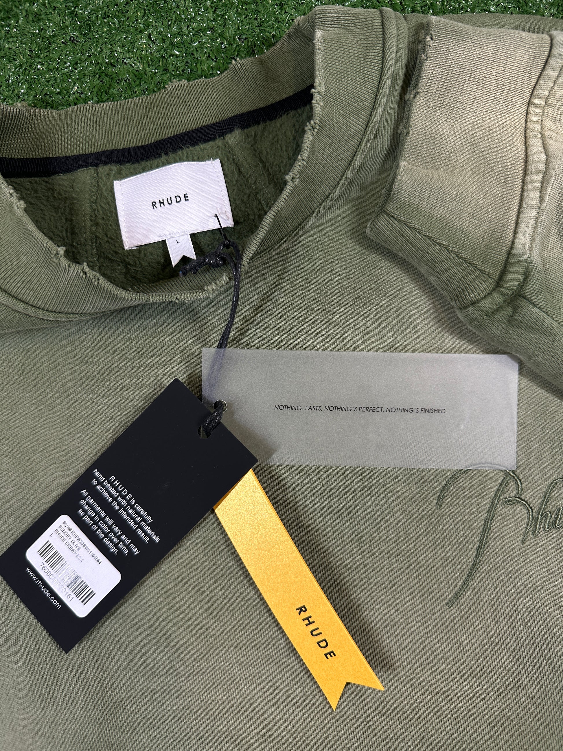 RHUDE Authentic Embroidered Crewneck Sweater-Sundry Olive-Size Large MSRP:$680.00