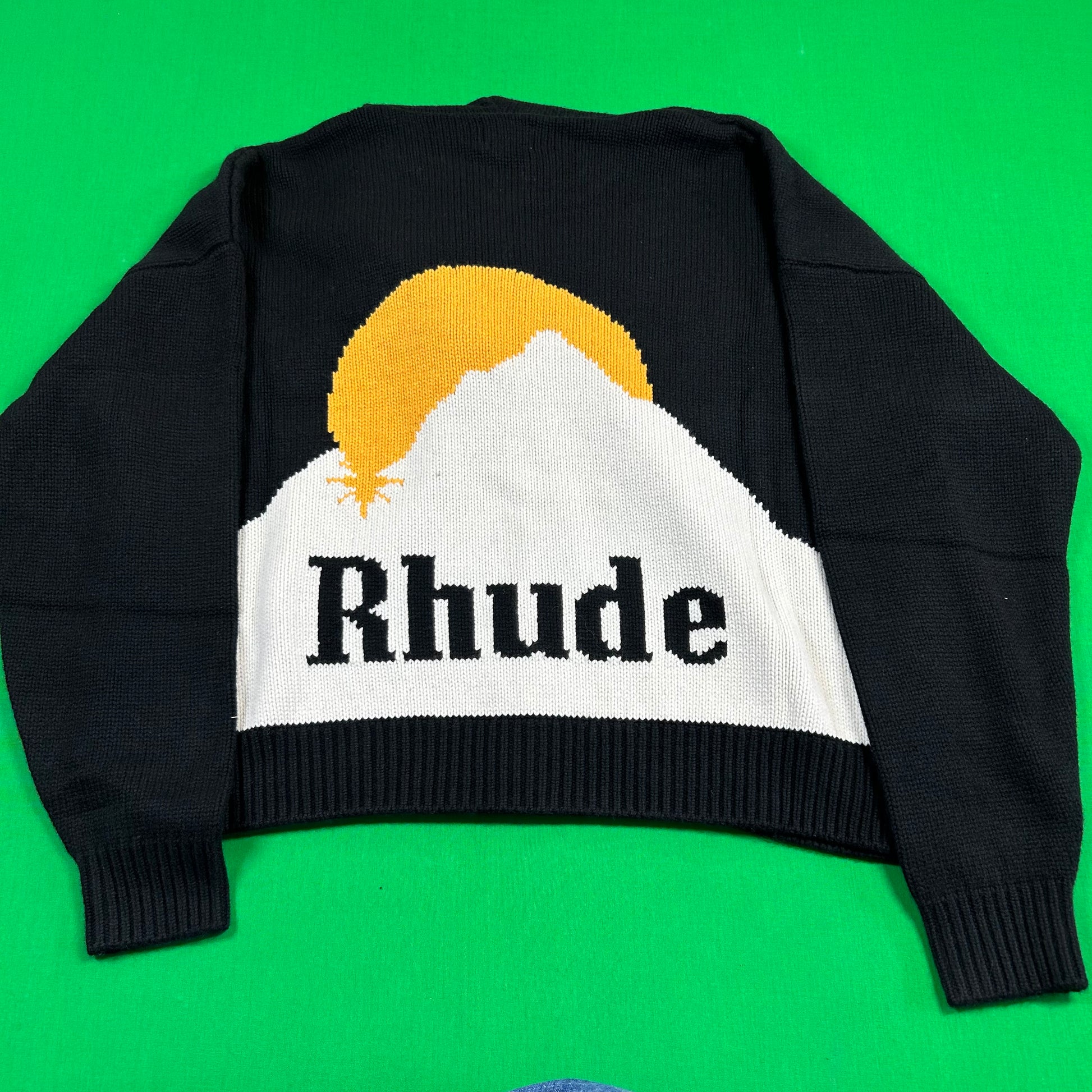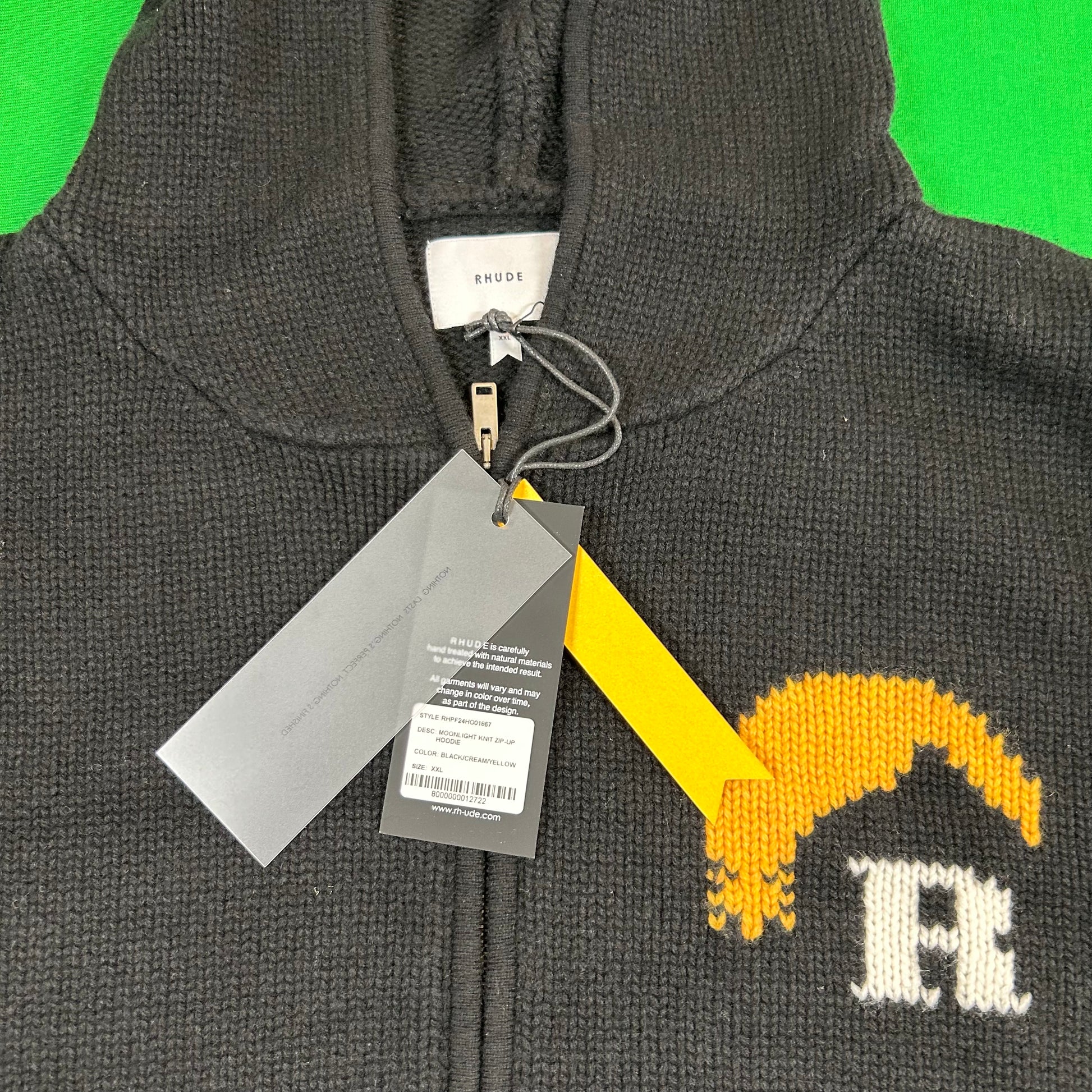 Rhude Moonlight Knit Zip Up Hoodie 'Black/Cream/Yellow' MSRP $2,233