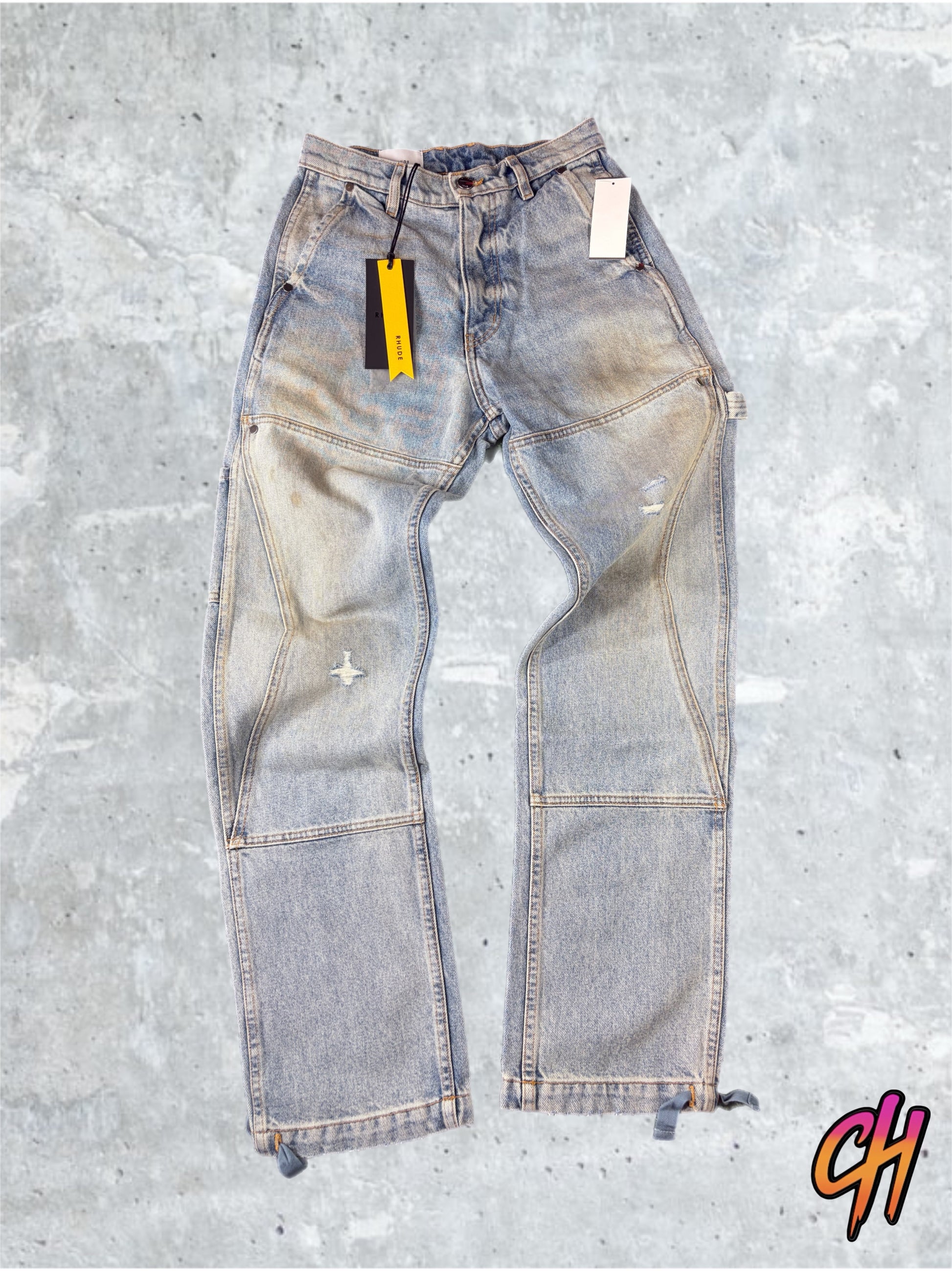 RHUDE Authentic Reza Denim Double Knee Indigo Pants Mens Size XL MSRP:$975.00