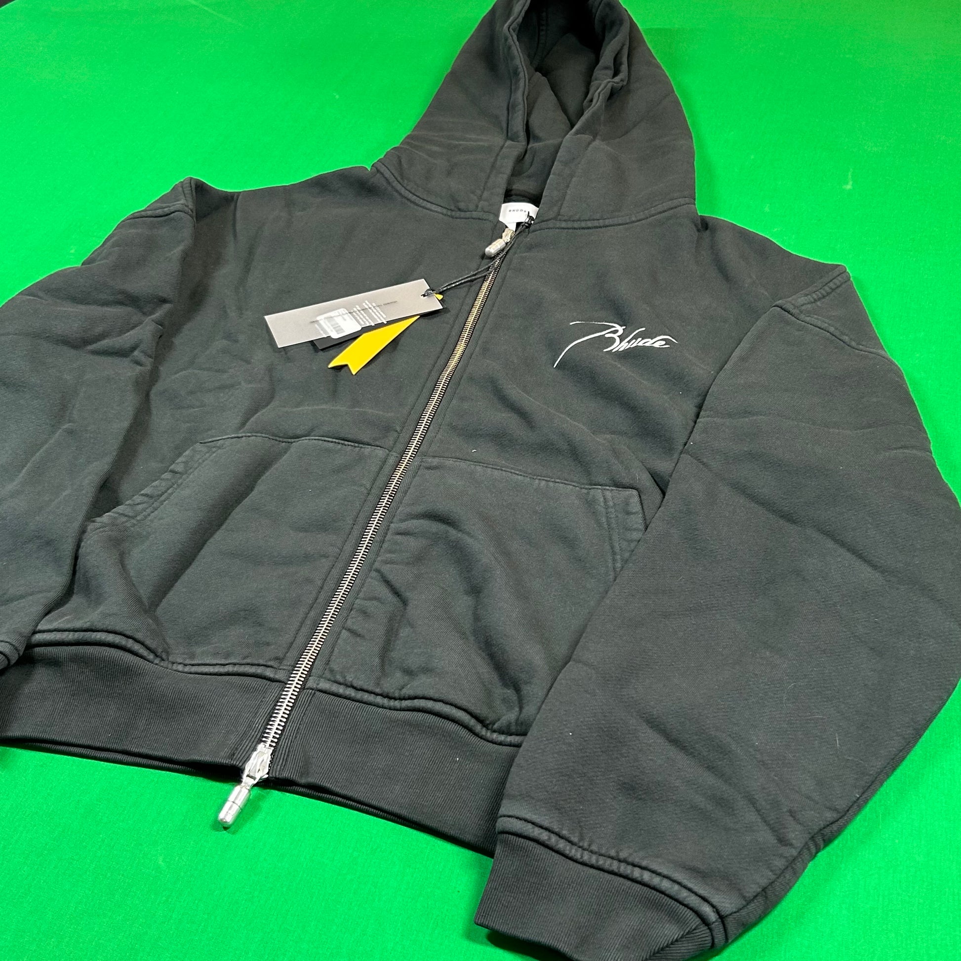 Rhude Zip Up Embroidered Logo Hoodie Vintage Black