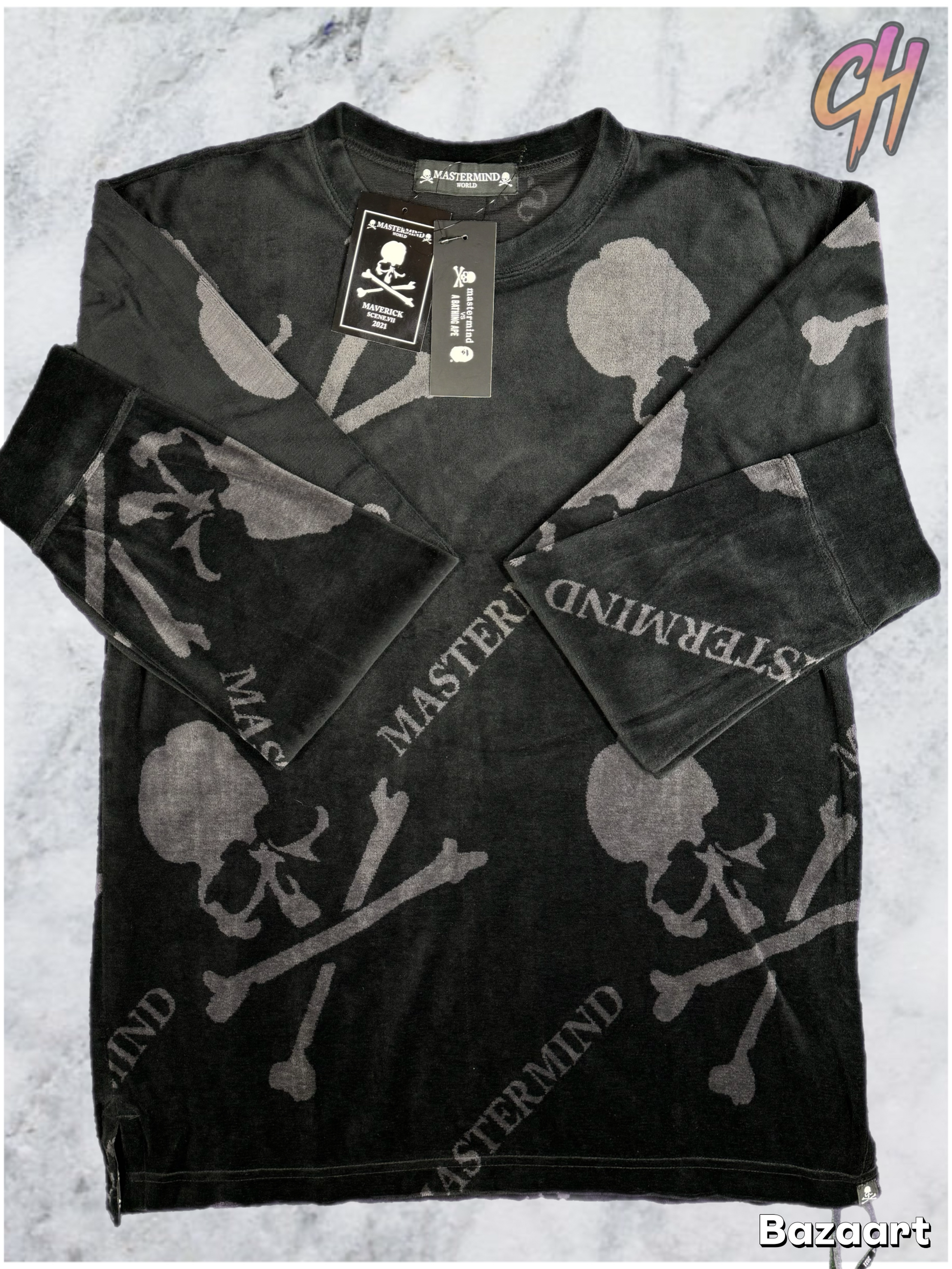 Mastermind Vs. Bape Velour Black All Over L/S Shirt Size Small